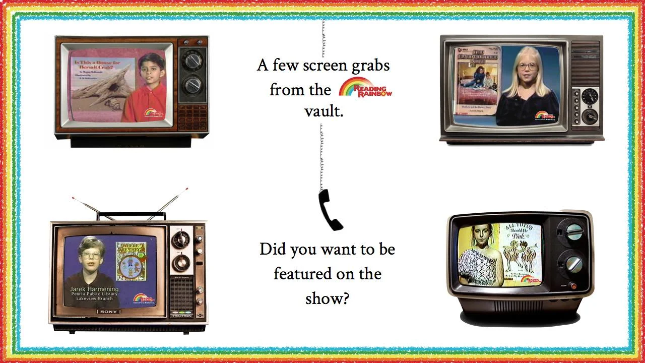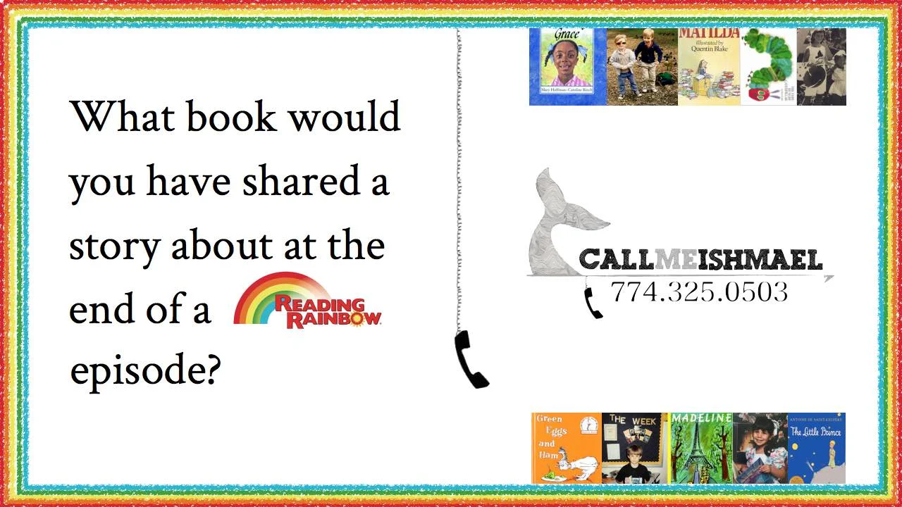 1. Call 774.325.0503 and share a story about a book that you might have talked about at the end of a Reading Rainbow episode.
